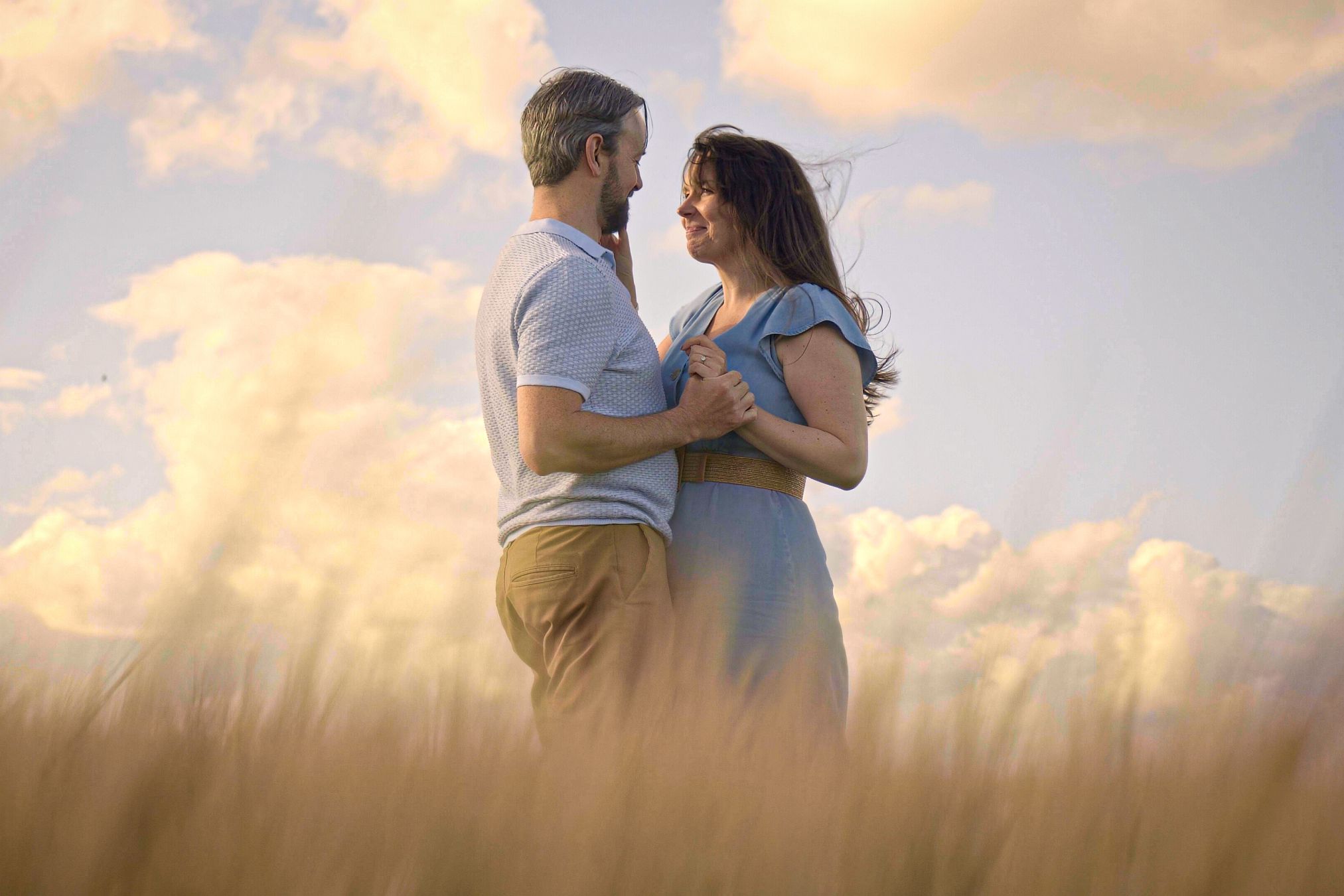 Aligning your engagement session attire with the season and location ensures your photos look cohesive and thoughtfully planned. For instance, light and airy fabrics work beautifully for beach shoots, moving gracefully in the ocean breeze, while cosy sweaters and layered outfits are perfect for autumn sessions in the woods.